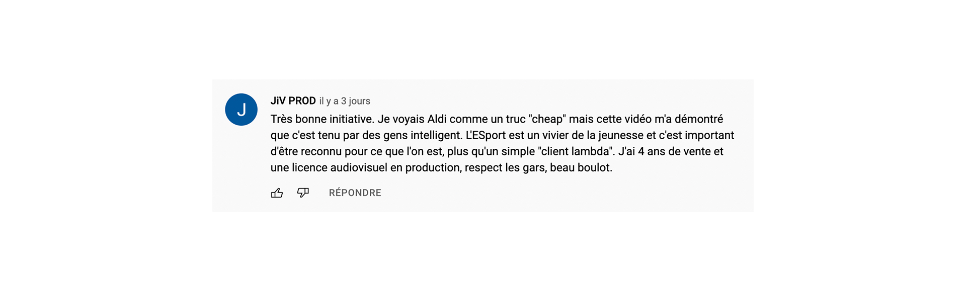 Aldi a fait appel à deux ambassadeurs bien connus du monde E-sport français, Rasmelthor et Lutti, pour animer, commenter et accompagner les joueurs tout au long de cette expérience de 6 mois.