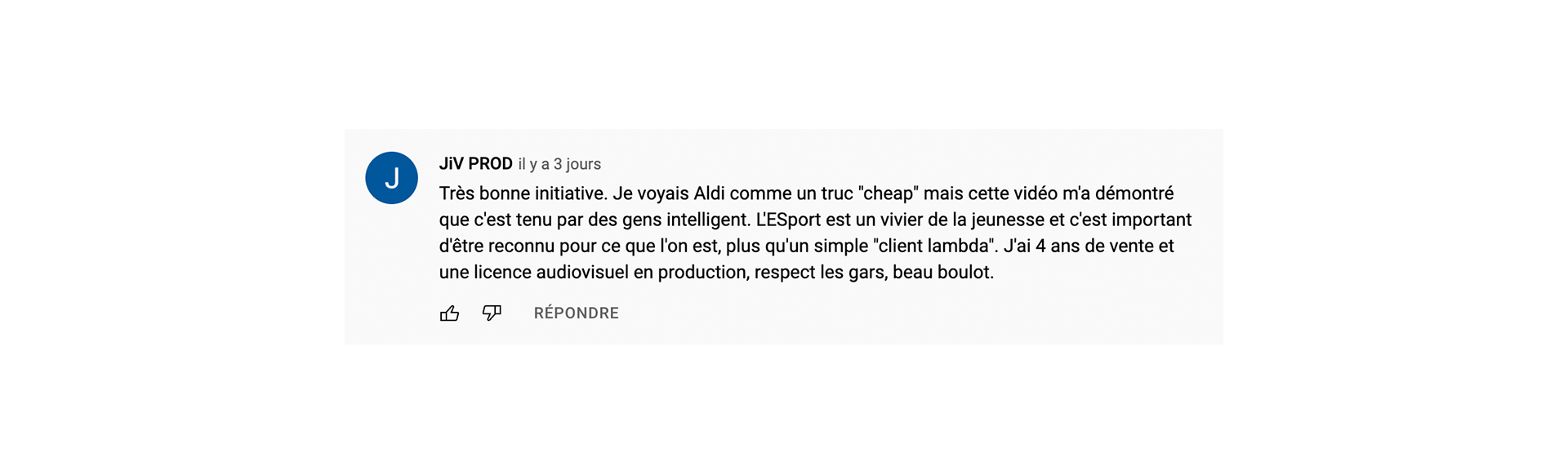 Aldi a fait appel à deux ambassadeurs bien connus du monde E-sport français, Rasmelthor et Lutti, pour animer, commenter et accompagner les joueurs tout au long de cette expérience de 6 mois.