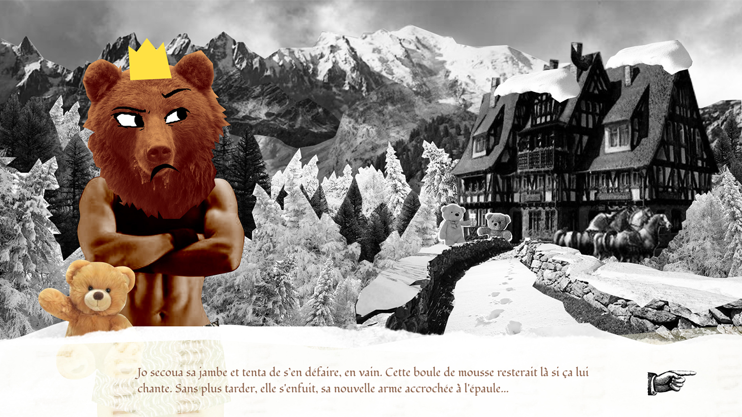 Il était plusieurs fois est un visual novel créé à partir de collages déjantés où les codes du conte de fées sont détournés pour déconstruire la notion de genre avec humour.