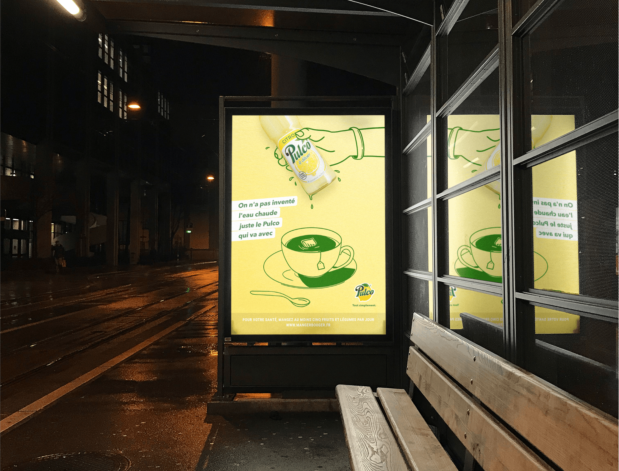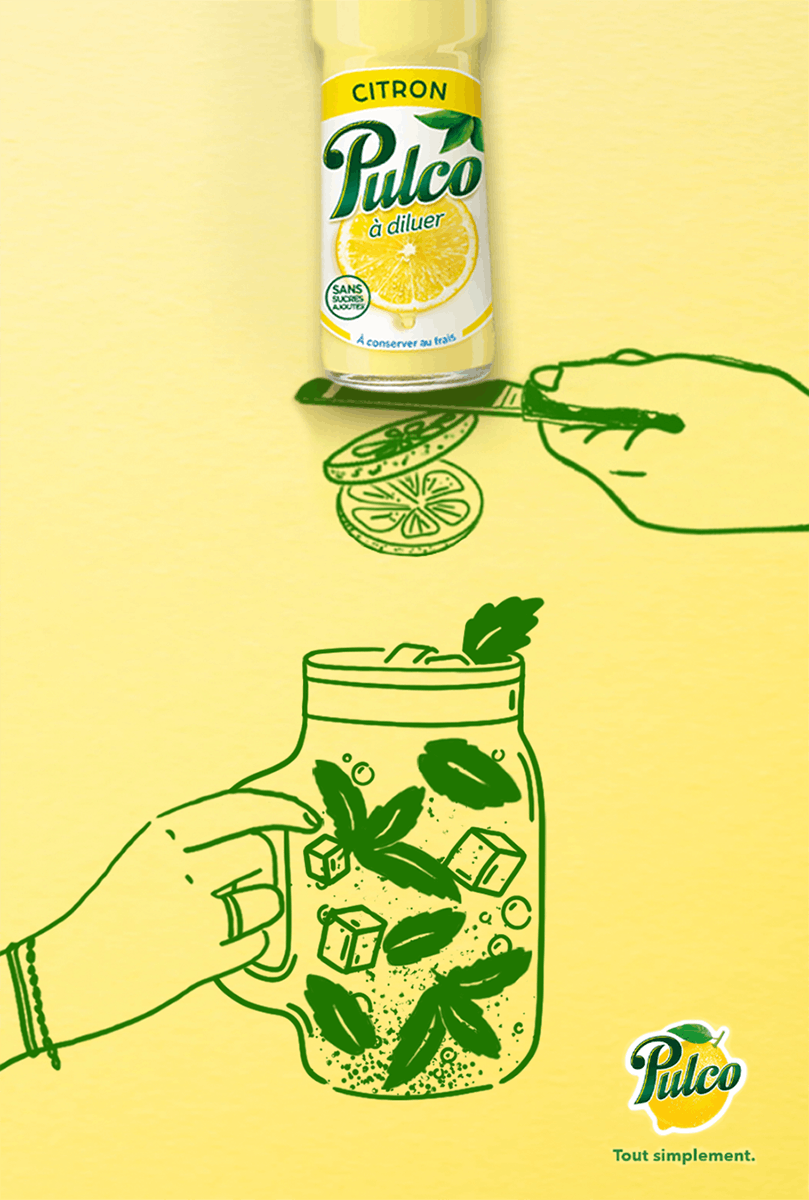 L'idée était d'intégrer visuellement la bouteille de Pulco dans divers usages possibles pendant l'hiver. Chaque recette est expliquée sous forme de tuto numéroté.