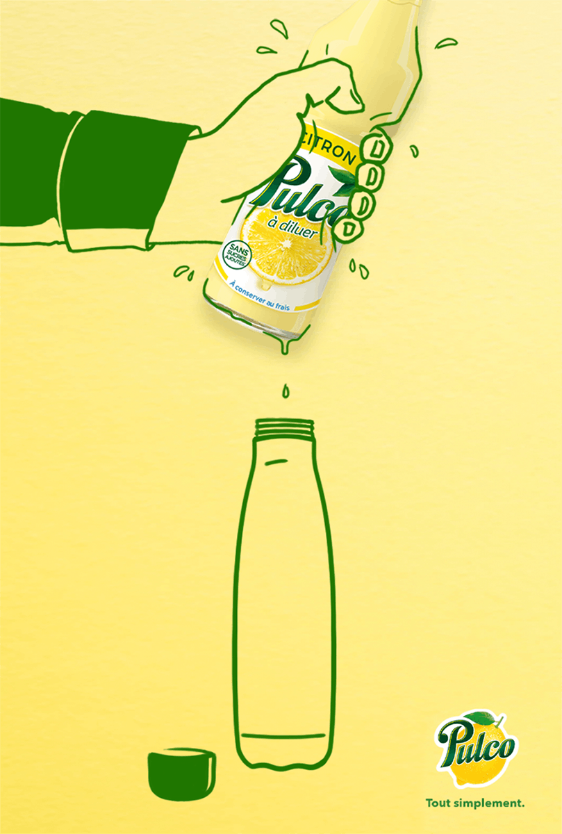 La bouteille Pulco, photographiée en topshot par Olivier Foulon, jaune sur fond jaune, tient le rôle principal des différents tutos illustrés par Marie Assénat.