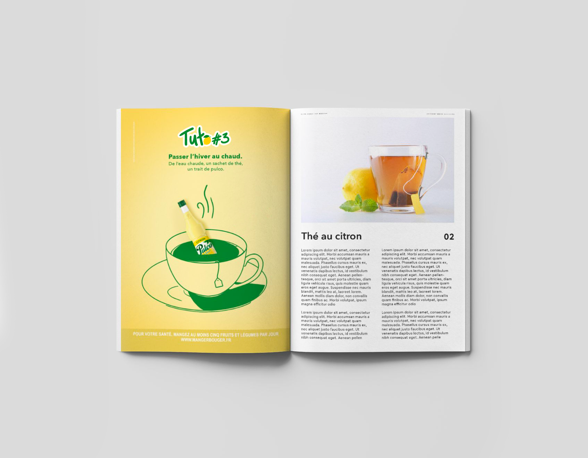 L'idée était d'intégrer visuellement la bouteille de Pulco dans divers usages possibles pendant l'hiver. Chaque recette est expliquée sous forme de tuto numéroté.